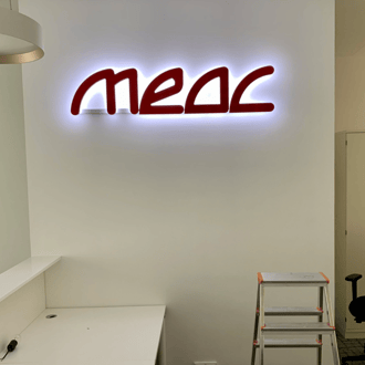 3D-Buchstaben, die nach hinten leuchten, werden auch als Rückleuchter bezeichnet. Front und Seite werden lichtdicht lackiert oder optional mit Folie, Edelstahl oder Aluminium beschichtet. Dadurch erhalten die Leuchtbuchstaben eine besondere Optik. Idealerweise werden diese Leuchtbuchstaben auf matten Untergründen montiert. Die LED-Leuchtbuchstaben haben standardmäßig eine Bautiefe von 20 mm.
